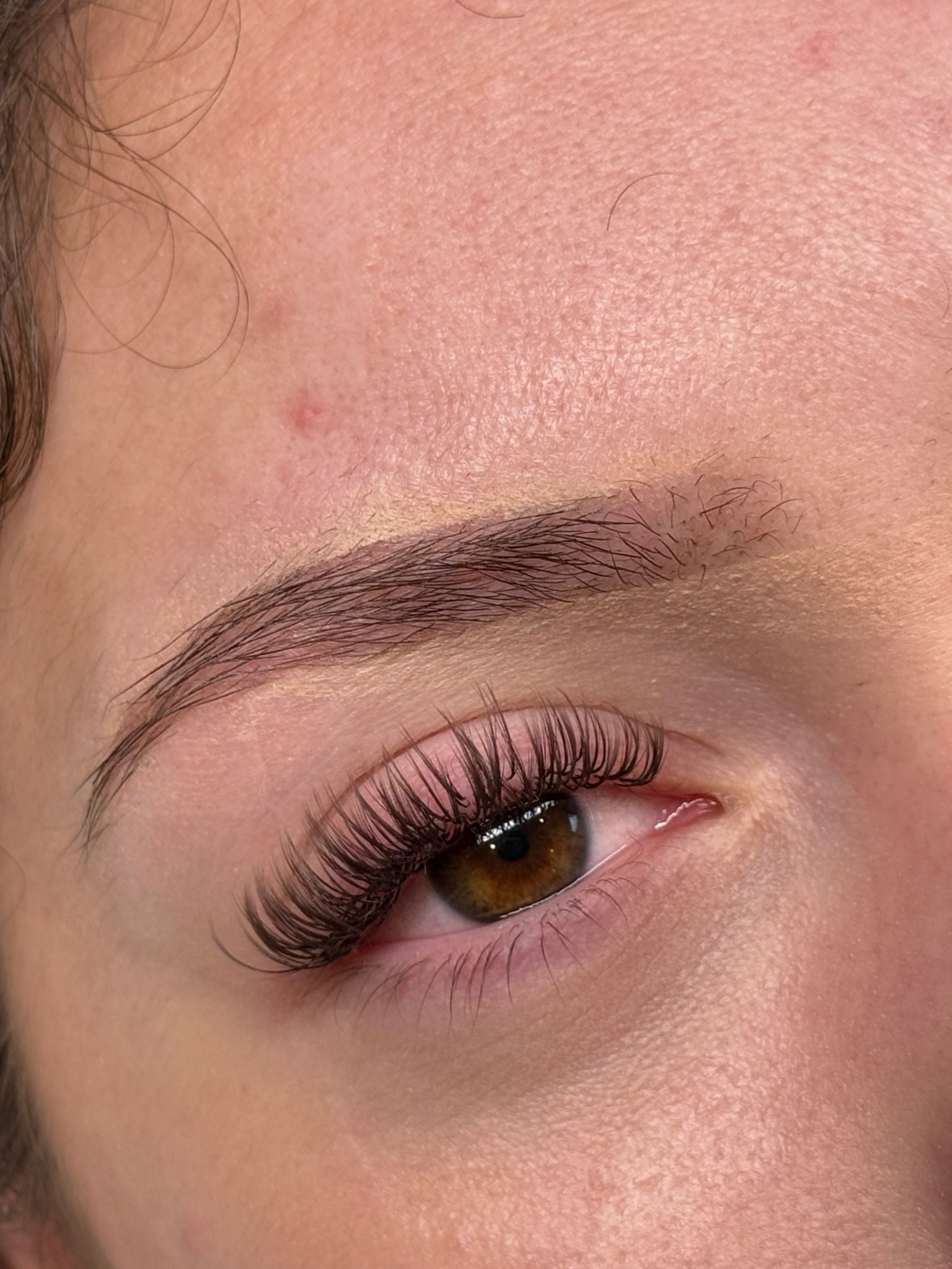 Wet set lashes is a style that combines classic lash application with slim volume fans creating a "wet" appearance similar to mascara coated lashes. Perfect for those who want more than a classic but less than a regular hybrid.